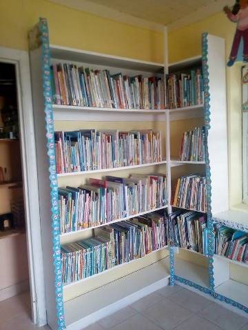 These books were used to establish a library in the former storage room of the local government building; which was transformed in one day for the community to enjoy.